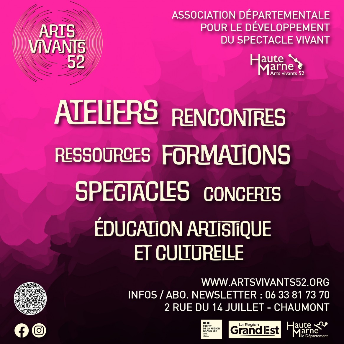 Retrouvez ici l'ensemble des actions proposées par Arts Vivants 52 en Haute-Marne en 2026 : ateliers, rencontres, formations, spectacles, concerts, ainsi que projets d'éducation artistique et culturelle.